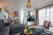 De woonkamer heeft een zithoek, flatscreen-tv (ook Duitse zenders) en een gezellige eethoek. De landelijke open keuken is voorzien van een gasfornuis met oven, koelkast, vaatwasser, koffiezetapparaat (Nespresso) en een waterkoker.