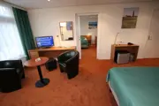 Deze ruime kamer, met een groot balkon op het zuiden, is voorzien van 2 eenpersoons boxspringbedden en een zithoek met tv. Een koelkastje is aanwezig. Er is een extra slaapkamer met 2 eenpersoons boxspringbedden, een tv en dubbele wastafel. De badkamer heeft een inloopdouche en dubbele wastafel. Er is een separaat toilet. Tuinmeubilair is aanwezig.