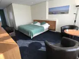 Deze kamer heeft een balkon op het zuiden en is voorzien van 2 eenpersoons boxspringbedden en een zithoek met tv. Een koelkastje is aanwezig. De badkamer heeft een inloopdouche, dubbele wastafel en toilet. Er staat meubilair op het balkon.