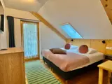 De B&B-kamers liggen op de eerste verdieping. Elke B&B-kamer heeft zijn eigen privé-badkamer met een regendouche en toilet. De drie B&B-kamers delen een gemeenschappelijke ruimte waar je koffie en thee kunt zetten, ontbijten of spelletjes kunt doen. In de gemeenschappelijke ruimte kun je je eigen boodschappen kwijt in de kastjes. De gemeenschappelijke ruimte met koelkast, gezellige eettafels en een aanrecht, deel je met de twee andere B&B-kamers. Let op: dit is een B&B, dus je kunt er niet in koken. Wel kun je eten opwarmen in het oventje of de magnetron.