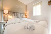 In de woonkamer staat een zithoek met tv, dvd-speler en radio/cd-speler. De open keuken beschikt over een geïntegreerde kookplaat, vaatwasser, combimagnetron, koelkast, waterkoker, koffiezetapparaat, Nespresso, broodrooster en een ruime eethoek. Er is een slaapkamer met 2 eenpersoons boxspringbedden. De badkamer heeft een douche en kleine sauna. Het toilet is apart. Op de bovenverdieping zijn twee slaapkamers met ieder 3 eenpersoons boxspringbedden. De tweede badkamer heeft een ligbad. Het toilet is apart. In de berging staan een wasmachine en droger. De tuin van deze villa biedt veel privacy. Er zijn twee terrassen met tuinmeubilair.