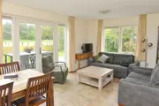 De woonkamer heeft een eethoek en zithoek met tv/radio. De keuken is ingericht met gasstel, combi-oven, koelkast met vriesvak en vaatwasser. Er is een slaapkamer met tweepersoons boxspringbed. De badkamer heeft een douche en toilet. Op de bovenverdieping zijn twee slaapkamers, waarvan een met 2 eenpersoons boxspringbedden. De andere slaapkamer heeft 1 eenpersoons boxspringbed. Er is een tweede badkamer met bad en toilet. Dit vakantiehuis heeft een grote, geheel omsloten tuin met veel privacy. Het terras is voorzien van tuinmeubilair.