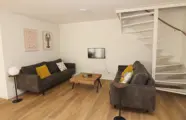 Bij binnenkomst stap je een sfeervolle woonkamer binnen met een comfortabele zithoek, open haard en tv. Aangrenzend vind je de eethoek en de open keuken, die is uitgerust met een vaatwasser, magnetron en koelkast. Dit geschakelde vakantiehuis beschikt over drie slaapkamers, waarvan er minimaal één is voorzien van twee eenpersoonsbedden. De badkamer is uitgerust met een douche, wastafel en toilet. Op de bovenverdieping bevinden zich nog twee slaapkamers, beide met twee eenpersoonsbedden. Je beschikt over een ruime tuin met terras en tuinmeubilair zodat je ook buiten heerlijk kunt ontspannen.
