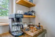 Via de dubbele entree kom je in de grote woon/eetkamer met 2 houtkachels, royale zithoek, twee tv's en ruime eethoek. Er is een woonkeuken met een vaatwasser, magnetron, 2 heteluchtovens, een dubbele inductieplaat, een grote koelkast, een Quooker, een koffiezetapparaat en een uitgebreide keukeninventaris. Op de begane grond is een ruime hal, toilet en twee royale slaapkamers. Op de 1e verdieping zijn 6 slaapkamers met elk 2 eenpersoons bedden en elk een eigen badkamer met wellnessdouche, wastafel en toilet. Op de 2e verdieping zijn nog eens 4 slaapkamers. Iedere hotelkamer heeft een tv, een ruime kastenwand en een eigen badkamer met wellnessdouche, wastafel en toilet. Alle kamers zijn voorzien van twee eenpersoons boxspring bedden. De bedden kunnen vastgehaakt worden om als twee persoons bed te dienen. Via openslaande deuren kom je vanuit de gemeenschappelijke woonkamer op je terras met terrasmeubilair. Het huis ligt op een prachtig landgoed, omringd door bomen en grenzend aan weilanden.