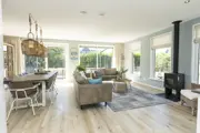 De woonkamer van deze vrijstaande villa heeft een eethoek en zithoek met houtkachel, kabel-TV en audioset. Er is een ruime hal met toilet. De keuken is voorzien van inductiekookplaat, koelkast met vriezer, afwasmachine, magnetron, oven, koffiezetapparaat, Nespresso, waterkoker en broodrooster. In de berging staan een wasmachine en een wasdroger. Op de begane grond is 1 slaapkamer met twee 1-persoons boxspringbedden en een eigen badkamer met douche en wastafel. Op de bovenverdieping zijn 3 slaapkamers met ieder twee 1-persoons boxspringbedden. Er is een badkamer met ligbad, douche en wastafel, apart toilet en een sauna. De villa's zijn energiezuinig en worden verwarmd met een warmtepomp. Deze luxe villa heeft een ruime tuin met terras op het zuiden. Tuinmeubilair is aanwezig. Op de bedden liggen synthetische dekbedden.