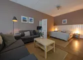 Dit appartement ligt op de begane grond. De woonkamer heeft een zithoek met een 2-persoonsbank en een 3-persoonsbank, een LED-TV en een eethoek met tafel en 4 stoelen.Er staat een extra breed 2-persoons boxspringbed in de kamer (180x200). De kitchenette is ingericht met een 2-pits keramische kookplaat en koelkast. De badkamer heeft een douche en toilet. Dit appartement heeft een ruim terras met tuintje op het zuiden. Er is tuinmeubilair aanwezig.