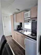 Dit chalet ligt in de buurt van de ingang. De woonkamer heeft een zithoek, flatscreen-tv, dvd-speler, radio/cd-speler en een eethoek. De open keuken is ingericht met fornuis, koelkast en magnetron. Er zijn twee slaapkamers, waarvan een met tweepersoons bed. De andere slaapkamer heeft 2 eenpersoons bedden. De badkamer heeft een douche, wastafel en toilet.Het chalet heeft een afgeschermd terras met tuinmeubilair.