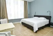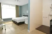 Deze kamer op de begane grond heeft een boxspring voor twee personen met een topmatras (180 x 200 cm) en een ruime inloopdouche (breed 125 cm, douchevlak 135 cm, diepte douche 200 cm). Er is een kitchenette (geen kookgelegenheid) met een koelkast met vriesvakje en koffie- en theefaciliteiten, een eierkoker en een Smart-TV. In de ruime hal is een toiletruimte die ook geschikt is voor mindervaliden. Het toilet is niet aan de zijkant bereikbaar. Je beschikt over een privé terras met een zitje in de gemeenschappelijke tuin. Deze kamer is geschikt voor 2 personen en 1 kind die in een campingbedje past.