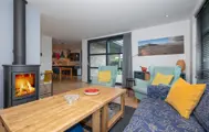 De woonkamer van dit vrijstaande vakantiehuis heeft een zithoek met tv en een eethoek. De open keuken is ingericht met inductiekookplaat, grote koelkast, vriezer, Senseo, magnetron, koffiezetapparaat en oven. In de bijkeuken staan een wasmachine, droger en airfryer. Er is een slaapkamer met twee eenpersoons boxspringbedden met eigen badkamer met inloopdouche en wastafel. Het toilet is apart. Op de bovenverdieping zijn twee slaapkamers met elk 2 eenpersoons boxspringbedden. De tweede badkamer heeft een inloopdouche, dubbele wastafel en toilet. Dit huis heeft een tuin met gedeeltelijk overdekt terras. Tuinmeubilair is aanwezig.