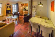 Appartement De Kwikstaart is de kleinste accommodatie in deze stolpboerderij waar de traditionele boerensfeer goed bewaard is gebleven. De woonkamer heeft een zithoek met tv en een eethoek. De open keuken is ingericht met koelkast en magnetron. Op de begane grond is een badkamer met douche en toilet. Op de bovenverdieping is een ruime slaapkamer met 2 eenpersoons boxspringbedden. Je kunt gebruik maken van een van de fijne terrassen in de heerlijke tuin van de boerderij.
