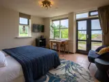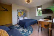 Een 2-persoons hoekkamer op de begane grond. Deze Pluskamer is iets groter als de terraskamer en beschikt over een extra bankje. Buiten vind je een eigen (prive) terrasje waar je heerlijk kunt genieten van de Texelse zeelucht.