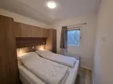 Het chalet beschikt over een ruime woonkamer met hoekbank, een open keuken en een eettafel. Er is een slaapkamer met een tweepersoonsbed (met aparte dekbedden) en een slaapkamer met een stapelbed en een eenpersoonsbed. De badkamer heeft een ruimte douche, wastafel en toilet. In het chalet is airconditioning aanwezig.