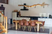 De woonkamer van dit vakantiehuis heeft een zithoek met gestemde piano, tv met o.a. Google Cromecast, Bluetooth box en eethoek. De open keuken is ingericht met een 5-pits kooktoestel, combimagnetron en vaatwasser. Er zijn twee slaapkamers voorzien van 2 eenpersoons boxspringbedden op de begane grond, op verzoek kan er een 1 persoons Hoog-Laagbed bij worden geplaatst. De badkamer heeft een onderrijdbare wastafel, een douche met douchezitje en een toilet met beugels. Er is een tweede badkamer met douche en ligbad. Op de bovenverdieping zijn nog twee slaapkamers met ieder 2 eenpersoons boxspringbedden. Dit vakantiehuis heeft een groot terras met tuinmeubilair en een groot grasveld met kinderspeeltoestel.