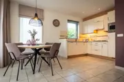 De woonkamer van deze vrijstaande bungalow heeft een zithoek met siergashaard, tv en audioset. De open keuken is voorzien van gaskookplaat, koelkast met vriesvak, combimagnetron, koffiezetapparaat, waterkoker en broodrooster. Er staat ook een eethoek. In de berging staan een wasmachine en wasdroger. Er zijn twee slaapkamers met elk twee 1-persoons boxspringbedden. Er is een badkamer met ligbad, aparte douche en wastafel. Het toilet is apart. Deze woning heeft een ruime tuin met terras. Tuinmeubilair is aanwezig. Op de bedden liggen synthetische dekbedden. Er is vloerverwarming.