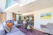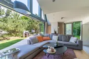 De living staat door de deuren in directe verbinding met het terras en de tuin waar je van de zomerse dagen kunt genieten, heerlijk kunt koken in de buitenkeuken met Big Green Egg of bij de houtkachel tijdens de zomerse avonden met een drankje het buitenleven kunt ervaren. Ook is er een trampoline voor de kinderen en tuinmeubilair aanwezig.