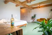 Deze ruime tweepersoonskamer is smaakvol en compleet ingericht. De kamer heeft een tweepersoons bed met twee matrassen en eenpersoons dekbedden en een zitje. Via twee openslaande deuren kom je op je eigen privéterras met uitzicht op de wijngaard. De moderne badkamer is voorzien van een regendouche, wastafel en toilet.