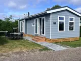 In de woonkamer van het chalet staan een bank, een flatscreen tv en een eethoek. Het chalet heeft openslaande deuren naar de tuin. De open keuken is ingericht met een 4-pits gaskookplaat, koelkast met vriesvak, magnetron, filter koffiezetapparaat en waterkoker. Er zijn twee slaapkamers waarvan één met een tweepersoons boxspringbed (2 matrassen van 80x200). In de andere slaapkamer staat een éénpersoons bed en een stapelbed waarvan beide bedden opklapbaar zijn. De ruime badkamer is uitgerust met douche, wastafel en toilet. Het chalet heeft een tuin met tuinmeubilair en een oplaadpunt voor de fiets.