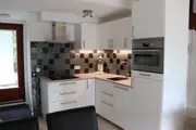 De open keuken van dit halfvrijstaande vakantiehuis is ingericht met magnetron en vaatwasser. De woonkamer heeft een zithoek met open haard, tv en radio/cd-speler. Tevens is er een eethoek. Op de begane grond is een badkamer met douche en toilet. In de berging staan een wasmachine en droger. Op de bovenverdieping zijn twee slaapkamers, waarvan een met 2 eenpersoons bedden. In de andere slaapkamer staan 2 eenpersoons bedden in L-vorm. Dit vakantiehuis heeft een tuin met terras. Tuinmeubilair is aanwezig.