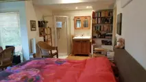 Entree, kamer met 1 tweepersoons bed, smart tv, magnetron, koelkast, waterkoker, servies en faciliteiten om koffie en thee te zetten. Eigen badkamer met inloopdouche en wastafel. Eigen toilet in aparte ruimte er naast. Je hebt de beschikking over een zonnig, beschut terras met tuinmeubels in de boomgaard.