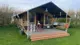 De safaritenten staan op het eerste campingveld. De tent is ingericht voor maximaal 4 personen (0-99 jaar) Er zijn 2 afsluitbare slaapcabines, beide voorzien van 2 losse 1-persoons boxspring bedden met naar wens een zomer of winter dekbed. De keuken is ingericht met een complete 4 persoons-inventaris, waaronder een waterkoker, Nespresso- koffiezetapparaat, 4pits gaskookplaat en tafelmodel koelkast. Er is geen stromend water aanwezig. Er staat een waterkan voor je klaar die je zelf kunt vullen bij het waterpunt vlakbij de tent. Douche en toilet kunnen gebruikt worden in de sanitair-unit van de camping. Voor de koudere dagen kun je gebruik maken van een elektrisch kacheltje. Voor de tent is een veranda met een heerlijke zitgelegenheid.