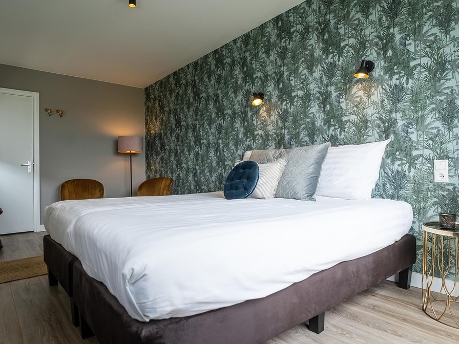 Het splinternieuwe paradepaardje van ons hotel is de Tuin Suite. Je verblijft op de benedenverdieping in een zeer ruime en stijlvolle suite. En zodra je de deur uitloopt, sta je in de tuin met wijds uitzicht over het prachtige natuurgebied de Roggesloot. De Tuin Suite is een lichte royale suite met warme kleuren en speelse details, die een huiselijk en behaaglijk gevoel geeft.