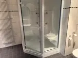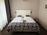 De ruime 3-persoonskamer op de begane grond heeft een tweepersoonsbed en een eenpersoonsbed en een zitje met flatscreen tv en telefoon. De badkamer heeft douche, wastafel en toilet.