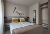 Deze ruime kamer is rolstoeltoegankelijk en heeft boxspringbedden met een topdek en een comfortabele zithoek met LCD-tv. Alle luxe kamers hebben een zithoek met een slaapbank. Koffie- en theefaciliteiten zijn aanwezig. De aangepaste badkamer heeft een douche, wastafel en toilet. Ook is er een bluetooth speakerset aanwezig, zodat jezelf muziek kunt streamen.