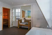 Deze luxe twee persoonskamer bevindt zich op de eerste etage van hotelvilla Nieuw Leven. De kamer beschikt over een luxe badkamer met grote privé-sauna, whirlpool, Wellness douche, ruim wastafelmeubel en toilet. De eikenhouten deuren, betonnen elementen, een schitterende fotowand in de douche, een smaakvolle inrichting en stoffering maken een overnachting tot een ware beleving! De kamer is voorzien van 2 comfortabele boxspringbedden, een tafel met stoelen en tv. Bij beschikbaarheid is het mogelijk een ledikant of extra bed voor een derde persoon erbij te reserveren.