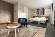 Ruime suite voor 2 personen op het souterrain met eigen badkamer. Met een heerlijk kingsize boxspringbed (180x200), een comfortabel zitje en een eethoek. Het klimaat in de kamer regel je zelf met de airconditioning en de vloerverwarming. De suite heeft een eigen badkamer met regendouche. De suite is hondenvrij en niet ingericht op kinderen of baby's. Je deelt de voordeur, het trappenhuis en de veranda voor het huis met de vaste bewoners. Verder zijn er geen gezamenlijke ruimtes.