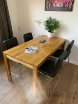 Entree, woonkamer met zithoek en twee lounge stoelen, flatscreen-tv en dvd-speler. Aan de royale eettafel geniet je samen van lange, sfeervolle diners of een gezellige spelletjesavond. De open keuken is volledig uitgerust met moderne apparatuur van koelkast en magnetron tot vaatwasser, zodat je moeiteloos een heerlijke maaltijd bereidt. Op de begane grond bevindt zich ook het toilet. Boven vind je twee sfeervolle slaapkamers: aan de achterzijde een kamer met een tweepersoonsbed en uitzicht op het bos en de duinen. Aan de voorzijde is een lichte kamer met twee eenpersoonsbedden. De badkamer heeft een douche en wastafel. Buiten kun je genieten van het zonnige terras aan de voorzijde, compleet met comfortabel tuinmeubilair. Perfect voor een uitgebreid ontbijt in de ochtendzon of een goed glas wijn bij zonsondergang.