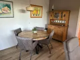 De woonkamer heeft een zithoek, tv en een eethoek. De open keuken is ingericht met een koelkast, combimagnetron en vaatwasser. De badkamer heeft een aparte douche, wastafel en toilet. Op de bovenverdieping zijn twee slaapkamers. Beide slaapkamers hebben boxspringbedden (90 x 200). Dit appartement heeft een terras met tuinmeubilair.