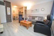 Dit nette appartement ligt op de begane grond van het appartementengebouw, aan de oostzijde. De woonkamer heeft een zithoek met tv, dvd-speler en een tweepersoons slaapbank. De open keuken is ingericht met een koelkast, 4-pits gaskookplaat, oven, koffiezetapparaat en een eethoek. In de slaapkamer staat een tweepersoons bed met twee eenpersoons matrassen. De badkamer heeft douche, wastafel en toilet. Dit appartement heeft een afgesloten terras. Tuinmeubilair is aanwezig.