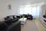 Dit nette appartement ligt op de eerste verdieping van het appartementengebouw. De woonkamer heeft een zithoek met tv en een eethoek. De open keuken is ingericht met een koelkast, 4-pits gaskookplaat, grill, magnetron en koffiezetapparaat. Er zijn twee slaapkamers met elk een tweepersoons bed (2 x 1 persoonsmatras) en 1 persoons dekbedden. De badkamer heeft douche, wastafel en toilet. Dit appartement heeft een balkon aan de oostzijde. Tuinmeubilair is aanwezig.