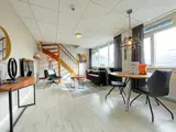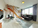 De woonkamer is voorzien van zithoek met LCD tv. Er is een eethoek. De open keuken is ingericht met koelkast, koffiezetapparaat, Nespresso, waterkoker en magnetron. De badkamer heeft een douche, wastafel en toilet. Op de verdieping is een slaapkamer met 2 eenpersoons boxspringbedden en een extra wastafel. Dit appartement ligt op de 1e etage aan de binnenplaatszijde, heeft geen balkon en weinig uitzicht.