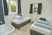 De woonkamer van deze vrijstaande bungalow heeft een zithoek met kabel-tv, radio en een eethoek. De open keuken is ingericht met koelkast met vriesvak, Dolce Gusto, combimagnetron, vaatwasser en waterkoker. Er zijn drie slaapkamers. Een met een tweepersoonsbed en twee slaapkamers met 2 eenpersoons bedden. De badkamer heeft een douche. Het toilet is apart. Deze bungalow heeft een tuin met terras en afsluitbare berging met stroomaansluiting. Tuinmeubilair is aanwezig. Bij de prijs inbegrepen zijn lakens, badhanddoeken en keukendoekjes tevens zijn de bedden bij aankomst opgemaakt.
