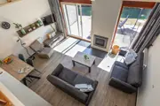 De open keuken van dit vrijstaande vakantiehuis heeft een vaatwasser, magnetron, oven en broodrooster. Tevens is er een eethoek. De woonkamer heeft een zithoek met open haard, tv, radio/cd-speler en dvd-speler. Er is beneden 1 slaapkamer met 1 eenpersoons bed. De badkamer heeft een douche. Er is een apart toilet. Boven zijn nog 2 slaapkamers met elk 2 eenpersoons bedden. Rondom dit vakantiehuis ligt een tuin. Er is een terras met tuinmeubilair.