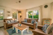 De woonkamer van dit vrijstaande vakantiehuis heeft een zithoek met LCD-tv, dvd-speler en audioapparatuur. Tevens is er een eethoek. De open keuken is ingericht met vaatwasser en combimagnetron en Senseo. Er is een apart toilet aanwezig. In de berging staan een wasmachine en droger. Op de bovenverdieping zijn twee slaapkamers met elk 2 eenpersoons bedden. Een van de slaapkamers heeft tv. De badkamer heeft een whirlpool, aparte douche, wastafel en een toilet. Dit vakantiehuis heeft een ruime tuin op het zuiden. Tuinmeubilair is aanwezig.