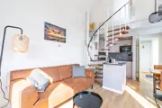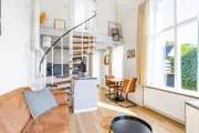 Entree, sfeervolle woonkamer met een zithoek met tv. De nette open keuken met eettafel voor twee personen is van alle gemakken voorzien zoals een vaatwasser, koelvriescombinatie, magnetron en verschillende koffiemachines. Badkamer met ligbad met douche, toilet en wastafelmeubel. Douchen kan in het ligbad. Via een wenteltrap kom je in de slaapkamer met 2 luxe eenpersoons hotel boxspring bedden. De woonkamer staat via openslaande deuren in verbinding met het terras. Het terras is volledig omheind en tuinmeubilair is aanwezig.