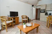 De woonkamer heeft een zithoek met tv. Er is ook een eethoek. De open keuken is ingericht met combi-oven en vaatwasser. Er zijn twee slaapkamers met elk twee eenpersoons-boxspringbedden, tevens hebben beide slaapkamers een kast. Een van de slaapkamers heeft een wastafel. De badkamer heeft een ligbad en aparte douche. Het toilet is apart. Dit vakantiehuis heeft een beschut terras met tuinmeubilair.