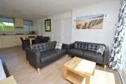 De woonkamer van deze vrijstaande bungalow heeft een eethoek en zithoek met open haard en tv. De open keuken is ingericht met koelkast, magnetron, vaatwasser en koffiezetapparaat. Er zijn drie slaapkamers, waarvan een met 2 eenpersoons boxspringbedden. De andere twee slaapkamers hebben elk 1 eenpersoons bed. De badkamer heeft een douche, wastafel en toilet. Deze bungalow heeft een ruime tuin met terras op het zuiden. Tuinmeubilair is aanwezig.