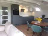 De woonkamer van appartement 't Achterhuis heeft een zithoek met interactieve tv. Er is ook een eethoek. De open keuken is ingericht met een koelkast met vriesvak en magnetron. Er zijn twee slaapkamers waarvan een met 2 eenpersoons boxspringbedden. In de andere slaapkamer staan 3 eenpersoons boxspringbedden. De badkamer heeft een douche, wastafel en toilet. Dit appartement heeft een omheinde tuin met een terras op het oosten en zicht over de velden.