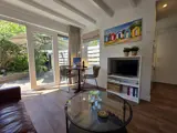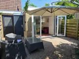 De gezellige woonkamer met zithoek is voorzien van een TV en heeft openslaande deuren naar een zonnig terras. Er is een eettafel voor 2 personen. De open keuken is uitgerust met o.a. een vaatwasser, een hete lucht oven, 2- pits inductie kookplaat en diverse koffiemachines. Het slaapgedeelte is voorzien van een twee persoons boxspringbed van 140x200 en een wastafel. De badkamer is uitgerust met douche en toilet. De kledingkast staat in de woonkamer. De volledig omheinde tuin met terras is voorzien van tuinmeubelen en een parasol. In het tuinhuisje staat een wasrek.