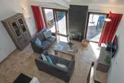 De open keuken van dit geschakelde vakantiehuis is ingericht met vaatwasser, magnetron, oven en broodrooster. De woonkamer heeft een zithoek met open haard, tv, radio/cd-speler en dvd-speler. Tevens is er een eethoek. De badkamer heeft een douche en toilet. Boven zijn twee slaapkamers met elk 2 eenpersoons bedden. Rondom dit vakantiehuis ligt een tuin. Er is een terras met tuinmeubilair.