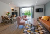 Dit moderne en gezellige appartement De Reede ligt op het erf van Landhuys Noorderhaecks. De woonkamer heeft een zithoek, eethoek, Smart-TV en Marshall audiosysteem. De open keuken is ingericht met inductiekookplaat, Nespresso, combimagnetron/heteluchtoven, vaatwasser en koelkast met vriesvak. De Reede heeft 2 slaapkamers met elk een tweepersoons kingsize boxspringbed en een eigen Smart-TV. De badkamer heeft douche, badmeubel en toilet. Vanuit de woonkamer kom je via openslaande deuren op een ruim eigen terras, met aansluitend een tuin die voor een groot deel wordt afgeschermd door hoge bomen en struiken.