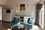 De open keuken van dit vrijstaande vakantiehuis is ingericht met vaatwasser, combimagnetron, koffiezetapparaat en Nespresso machine. In de woonkamer vind je een zithoek met sfeergashaard, flatscreen tv, dvd-speler en stereo-apparatuur met Iphone/Ipad-dock. Er is ook een eethoek. De badkamer heeft een sunshower met zonlicht en infraroodstraling, handdouche met massagestralen, wastafelmeubel en handdoekradiator. Er is een apart toilet. In de berging staan een wasmachine en droger. Op de bovenverdieping zijn twee slaapkamers, waarvan een met 2 eenpersoons bedden en een tv. De andere slaapkamer heeft 2 eenpersoons bedden en een wastafelmeubel. Dit vakantiehuis heeft een tuin met terras. Tuinmeubilair is aanwezig.