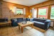 De woonkamer van het vrijstaande vakantiehuis De Ponter heeft een zithoek met tv. Er is ook een eethoek. De open keuken is ingericht met een koelkast en een koffiezetapparaat. Er is een slaapkamer met 2 eenpersoons bedden. De badkamer heeft een ligbad, douche en toilet. Op de bovenverdieping is er een slaapkamer met 2 eenpersoons bedden. Het Finse vakantiehuis De Ponter heeft een veranda en een ruime tuin met veel privacy. Tuinmeubilair is aanwezig.