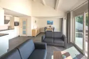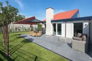 De ruime woonkamer van dit vrijstaande vakantiehuis heeft een zithoek met open haard, flatscreen tv, radio/cd-speler en dvd-speler. Tevens is er een eethoek. De open keuken is ingericht met inductiekookplaat, combimagnetron, vaatwasser, filterkoffiezetapparaat, Senseo en broodrooster. Op de begane grond is een slaapkamer met 2 eenpersoons boxspringbedden en tv. De badkamer heeft een inloopdouche, dubbele wastafel en toilet. Er is een tweede, apart toilet aanwezig. In de berging staan een wasmachine en droger. Op de bovenverdieping zijn twee slaapkamers, waarvan een met een tweepersoons lits-jumeaux boxspringbed en tv. De andere slaapkamer heeft 1 eenpersoons boxspringbed en tv. Dit vakantiehuis heeft een ruim terras en geheel omsloten tuin d.m.v een metalen hekwerk. Tuinmeubilair is aanwezig.