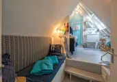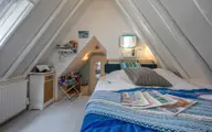 De kamer op de bovenverdieping heeft een tweepersoons boxspringbed (180 x 200) van Swiss Sense. Het bed kan eventueel opgesplitst worden in twee eenpersoons bedden. Een koelkast, waterkoker en Nespresso zijn aanwezig. De badkamer heeft een douche en wastafelmeubel. Op de begane grond is een privétoilet.
