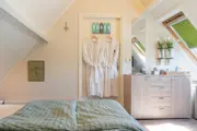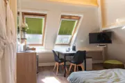 Deze kamer op de eerste verdieping van het woonhuis van de eigenaar heeft twee eenpersoonsbedden en een zithoek met tv. Je beschikt over een kleine koelkast, waterkoker en Nespresso koffiezetapparaat. De badkamer met douche, wastafel en het separaat toilet zijn voor eigen gebruik. Je kunt heerlijk buiten zitten op het terras naast het huis.