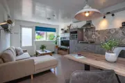 De woonkamer heeft een zithoek en een Smart TV met geluidsinstallatie. De open keuken is ingericht met inductieplaat, combimagnetron, koelkast met vriesvak en koffiezetapparaat Hier is een eethoek aanwezig. De slaapkamer is uitgerust met tweepersoons boxspringbed en kledingkast. De badkamer heeft een inloopdouche, wastafel, toilet en elektrisch verwarmingselement. Deze bungalow heeft een gezamenlijke, afgesloten tuin gelegen op het zuiden. Tuinmeubilair, kussens en parasol zijn beschikbaar. Ook uw fiets kunt u overdekt in het fietsenschuurtje stallen alwaar een elektrapunt beschikbaar is voor het opladen van uw batterij/accu.